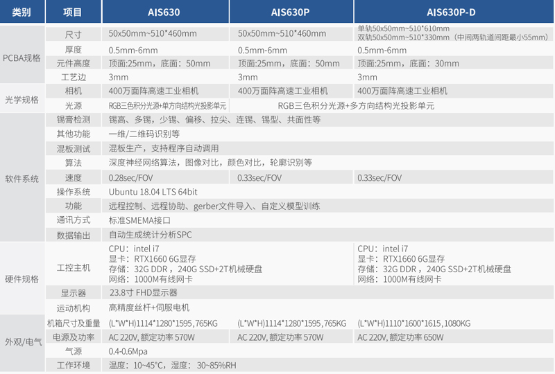 镭晨在线SPI锡膏检测仪AIS-630技术参数:
