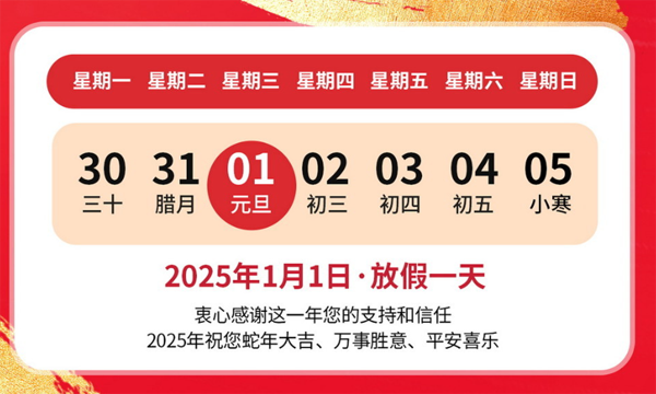 祥龙贺岁辞旧去,瑞凤呈祥迎新来。在这岁序更替、辞旧迎新之际,根据国家法定节假日规定,并结合公司实际情况,现将元旦放假安排通知如下: