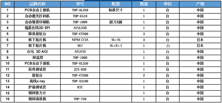 松下贴片机设备方案清单