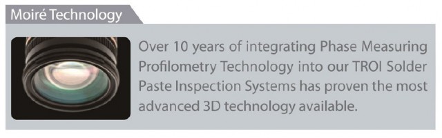 在Pemtron锡膏检测系统中已使用超过10年的PMP相位测量技术(莫尔条纹),拥有丰富的3D图像处理和检测经验。