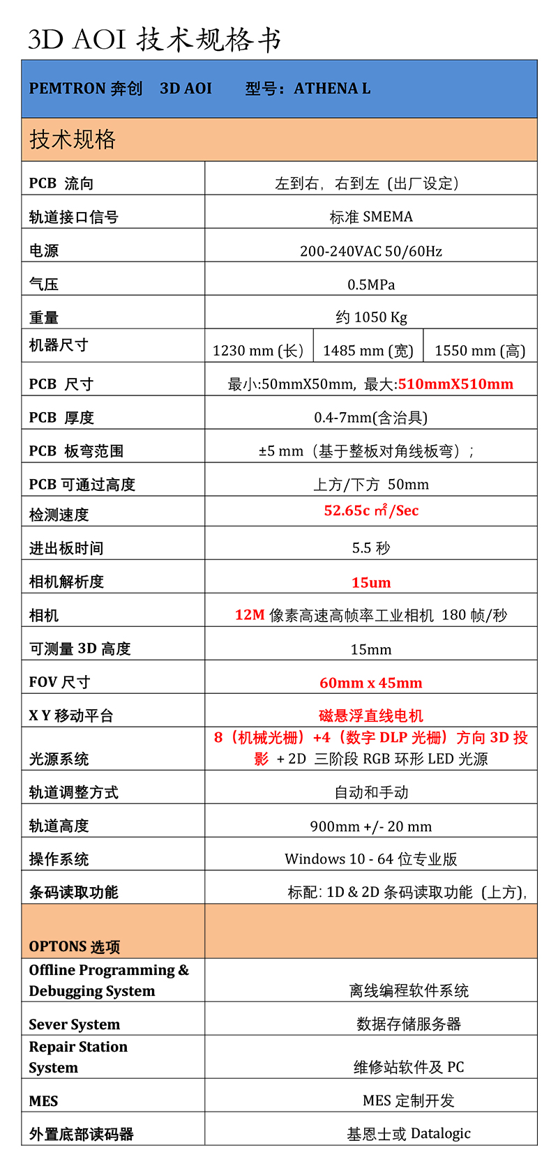 ATHENA采用先进的算法,使用先进强大的影像处理器、控制器和自主专项开发的10MP、15um、 180fps远心镜头相机,实现高速、稳定的测试。