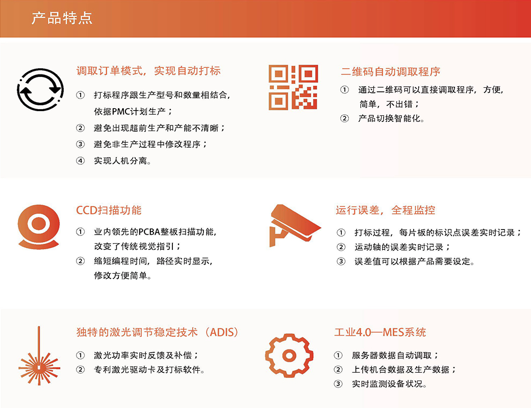 双摄像头设计,可实现定位点捕捉和条码扫描监测。翻板结构设计通过电路板的翻转,可直接实现双面雕刻。软件人性化设计,让操作简单易行,大大降低人员培训时间。强大的软件拓展功能,通过MES系统对接完善企业生产管理系统。