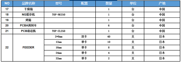 松下贴片机设备方案清单