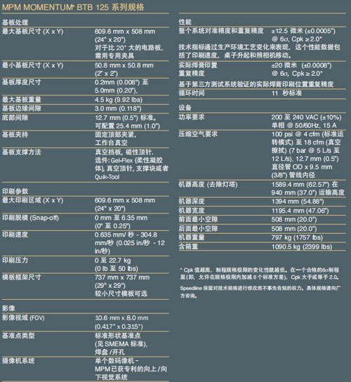 MPM Momentum BTB 125印刷机,锡膏印刷机技术参数规格: